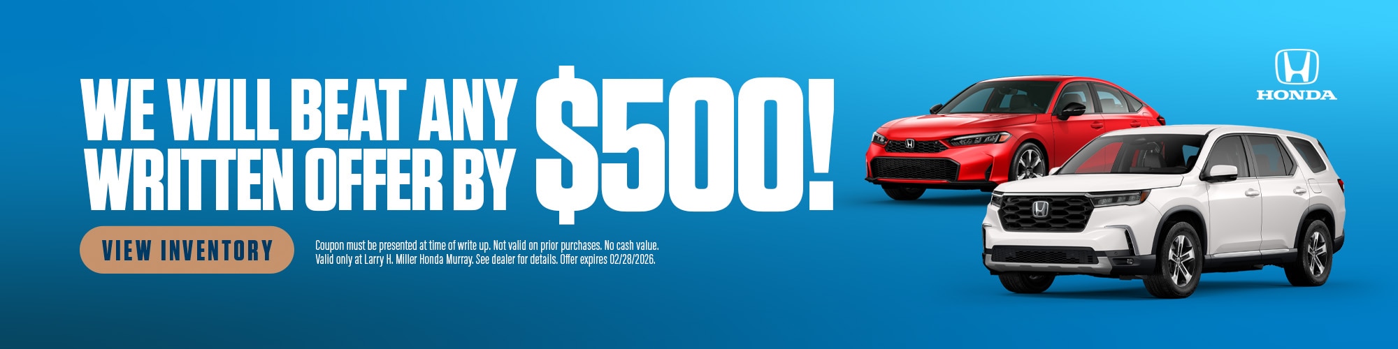 When you shop at Larry H. Miller Honda Murray you will get a great buying experience from the time you walk into the dealership Showroom to when you drive off the lot in a new Honda. Be sure to browse the latest New Vehicle Specials for up-to-date promotions, or check out Larry H. Miller Honda Murray Incentives to save even more. If you find your desired vehicle, and need financing please complete the Pre-Approval form and Larry H. Miller Honda Murray will help you get into your ideal vehicle!