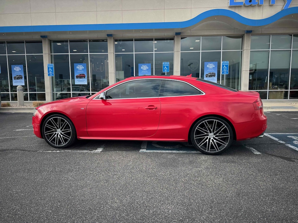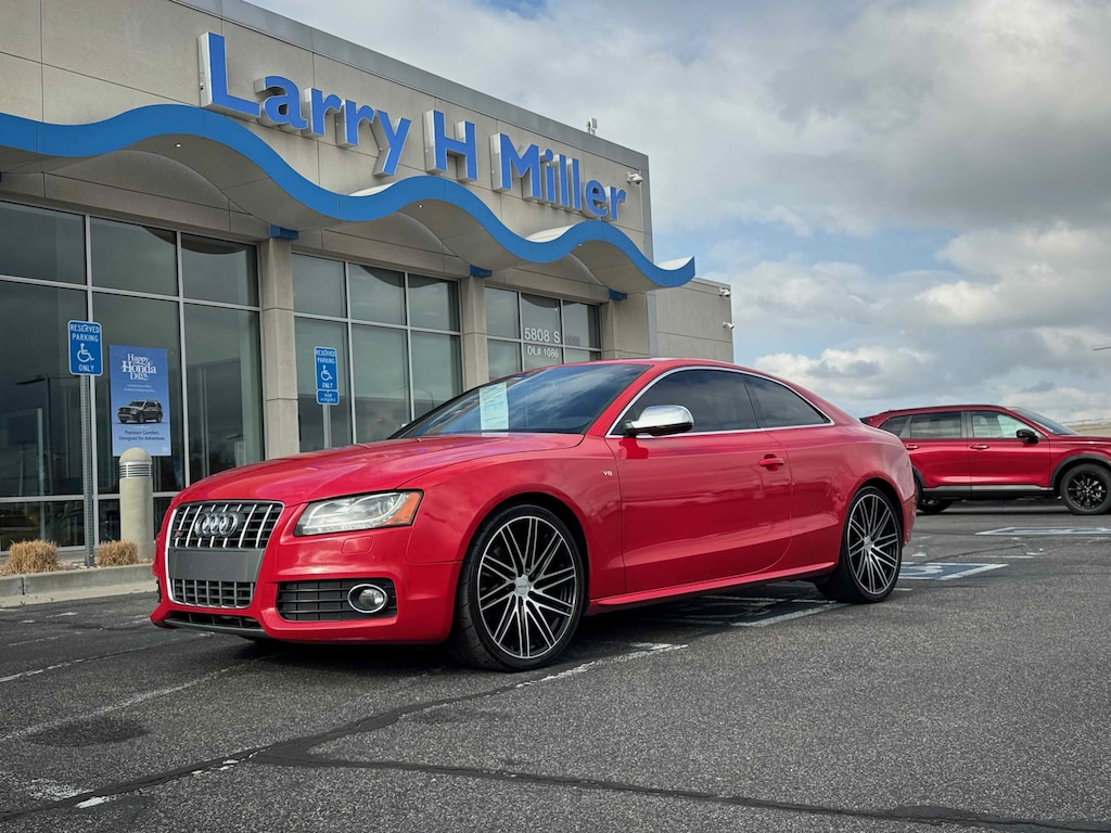 Larry H. Miller Honda Murray offers this 2012 Brilliant Red Audi S5 4.2 Prestige AWD It is loaded with many standard and optional features including: 10 Speakers, 4-Wheel Disc Brakes, 6-Step Heated Front Seats, 8.5J x 19 5-Parallel Spoke Star-Design Wheels, ABS brakes, Air Conditioning, Alloy wheels, AM/FM radio: SIRIUS, Auto-dimming door mirrors, Auto-dimming Rear-View mirror, Automatic temperature control, Brake assist, Bumpers: body-color, CD player, Compass, Delay-off headlights, Driver door bin, Driver vanity mirror, Dual front impact airbags, Dual front side impact airbags, Electronic Stability Control, Four wheel independent suspension, Front anti-roll bar, Front Bucket Seats, Front Center Armrest, Front dual zone A/C, Front fog lights, Front reading lights, Garage door transmitter: HomeLink, Headlight cleaning, Heated door mirrors, Heated front seats, High intensity discharge headlights: Xenon plus, Illuminated entry, Knee airbag, Leather Shift Knob, Leather steering wheel, Low tire pressure warning, Memory seat, Occupant sensing airbag, Outside temperature display, Overhead airbag, Overhead console, Panic alarm, Passenger door bin, Passenger vanity mirror, Power door mirrors, Power driver seat, Power moonroof, Power passenger seat, Power steering, Power windows, Radio data system, Radio: Audi Premium 1CD Sound System, Rain sensing wipers, Rear air conditioning, Rear anti-roll bar, Rear fog lights, Rear reading lights, Rear seat center armrest, Rear window defroster, Remote keyless entry, Security system, Silk Nappa Leather Seat Trim, Speed control, Speed-sensing steering, Speed-Sensitive Wipers, Split folding rear seat, Sport steering wheel, Steering wheel mounted audio controls, Tachometer, Telescoping steering wheel, Tilt steering wheel, Traction control, Trip computer, Turn signal indicator mirrors, and Variably intermittent wipers.