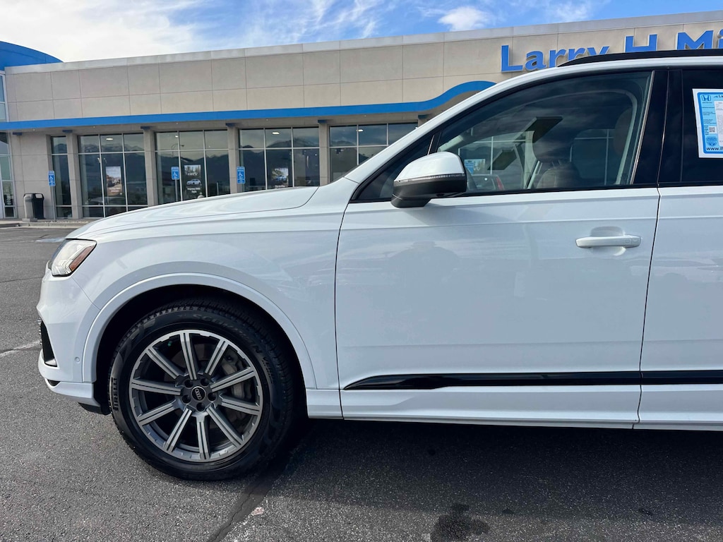 Larry H. Miller Honda Murray offers this 2023 Glacier White Audi Q7 45 Premium Plus AWD It is loaded with many standard and optional features including: 10 Speakers, 3.76 Axle Ratio, 3rd row seats: bench, 4-Wheel Disc Brakes, ABS brakes, Air Conditioning, Alloy wheels, AM/FM radio: SiriusXM w/ 360L, Auto High-beam Headlights, Auto-dimming door mirrors, Auto-dimming Rear-View mirror, Automatic temperature control, Brake assist, Bumpers: body-color, Compass, Delay-off headlights, Driver door bin, Driver vanity mirror, Dual front impact airbags, Dual front side impact airbags, Electronic Stability Control, Emergency communication system: Audi connect CARE, Exterior Parking Camera Rear, Four wheel independent suspension, Front anti-roll bar, Front Bucket Seats, Front Center Armrest, Front dual zone A/C, Front fog lights, Front reading lights, Fully automatic headlights, Garage door transmitter: HomeLink, Genuine wood door panel insert, Heated door mirrors, Heated Front Bucket Seats, Heated front seats, Illuminated entry, Leather Seating Surfaces, Leather Shift Knob, Leather steering wheel, Low tire pressure warning, Memory seat, Navigation system: Audi MMI Navigation plus with Touch Response, Occupant sensing airbag, Outside temperature display, Overhead airbag, Overhead console, Panic alarm, Passenger door bin, Passenger vanity mirror, Power door mirrors, Power driver seat, Power Liftgate, Power moonroof: Panoramic, Power passenger seat, Power steering, Power windows, Radio data system, Radio: Audi Sound System, Rain sensing wipers, Rear air conditioning, Rear anti-roll bar, Rear fog lights, Rear reading lights, Rear seat center armrest, Rear side impact airbag, Rear window defroster, Rear window wiper, Reclining 3rd row seat, Remote keyless entry, Roof rack: rails only, Security system, Speed control, Speed-sensing steering, Split folding rear seat, Spoiler, Steering wheel memory, Steering wheel mounted audio controls, Tachometer, Telescoping steering wheel, Tilt steering wheel, Traction control, Trip computer, Turn signal indicator mirrors, Variably intermittent wipers, and Wheels: 19 5-Arm-Star Design.