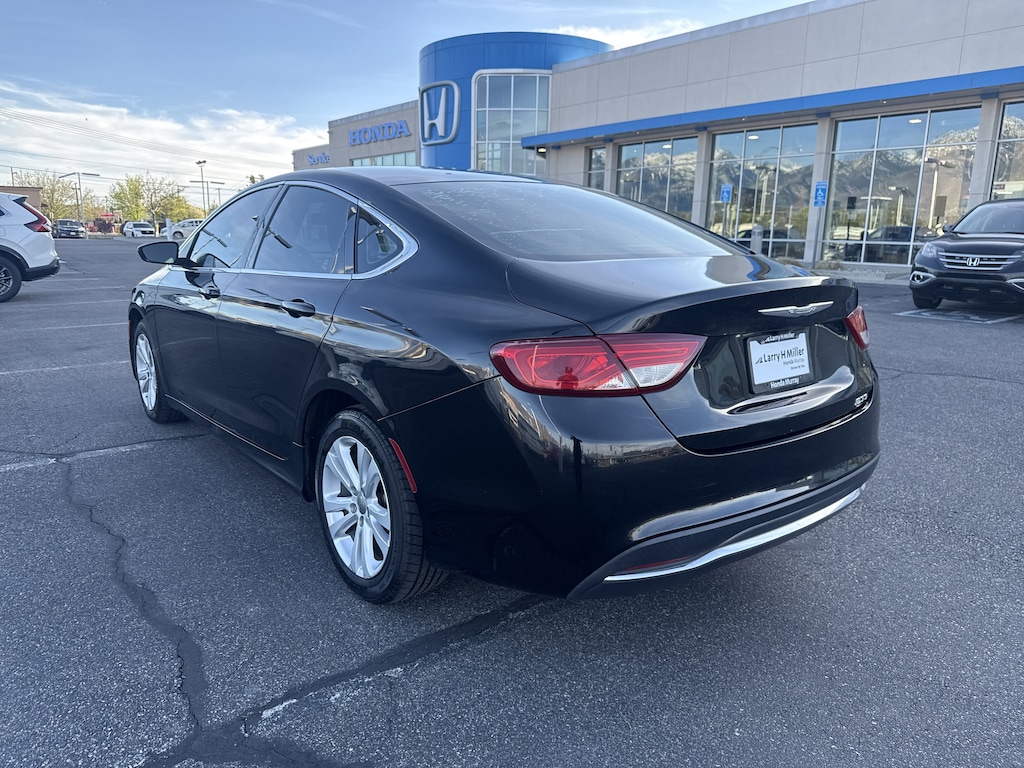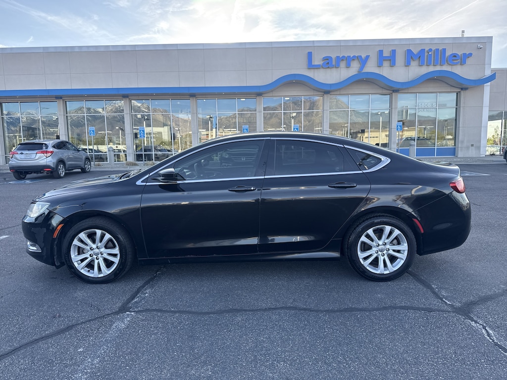 Larry H. Miller Honda Murray offers this 2016 Black Clearcoat Chrysler 200 Limited FWD It is loaded with many standard and optional features including: Quick Order Package 24E (Discontinued), Black Cloth, 4-Wheel Disc Brakes, 6 Speakers, ABS brakes, Accessory Switch Bank, Air Conditioning, Alloy wheels, AM/FM radio, Anti-whiplash front head restraints, Brake assist, Bumpers: body-color, Compass, Delay-off headlights, Driver door bin, Driver vanity mirror, Dual front impact airbags, Dual front side impact airbags, Electronic Stability Control, Engine Oil Cooler, Flex Fuel Vehicle, Four wheel independent suspension, Front anti-roll bar, Front Bucket Seats, Front Center Armrest, Fully automatic headlights, Illuminated entry, Integrated Voice Command w/Bluetooth, Knee airbag, Low tire pressure warning, Occupant sensing airbag, Outside temperature display, Overhead airbag, Overhead console, Panic alarm, ParkView Rear Back-Up Camera, Passenger door bin, Passenger vanity mirror, Power door mirrors, Power steering, Power windows, Radio: Uconnect 5.0, Rear anti-roll bar, Rear seat center armrest, Rear window defroster, Remote keyless entry, Security system, Speed control, Speed-sensing steering, Speed-Sensitive Wipers, Split folding rear seat, Steering wheel mounted audio controls, Tachometer, Telescoping steering wheel, Tilt steering wheel, Traction control, Trip computer, Variably intermittent wipers, and Wheels: 17 x 7.5 Tech Silver Aluminum.