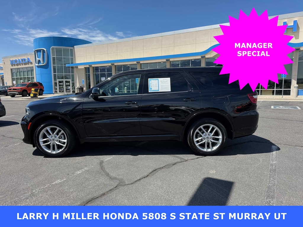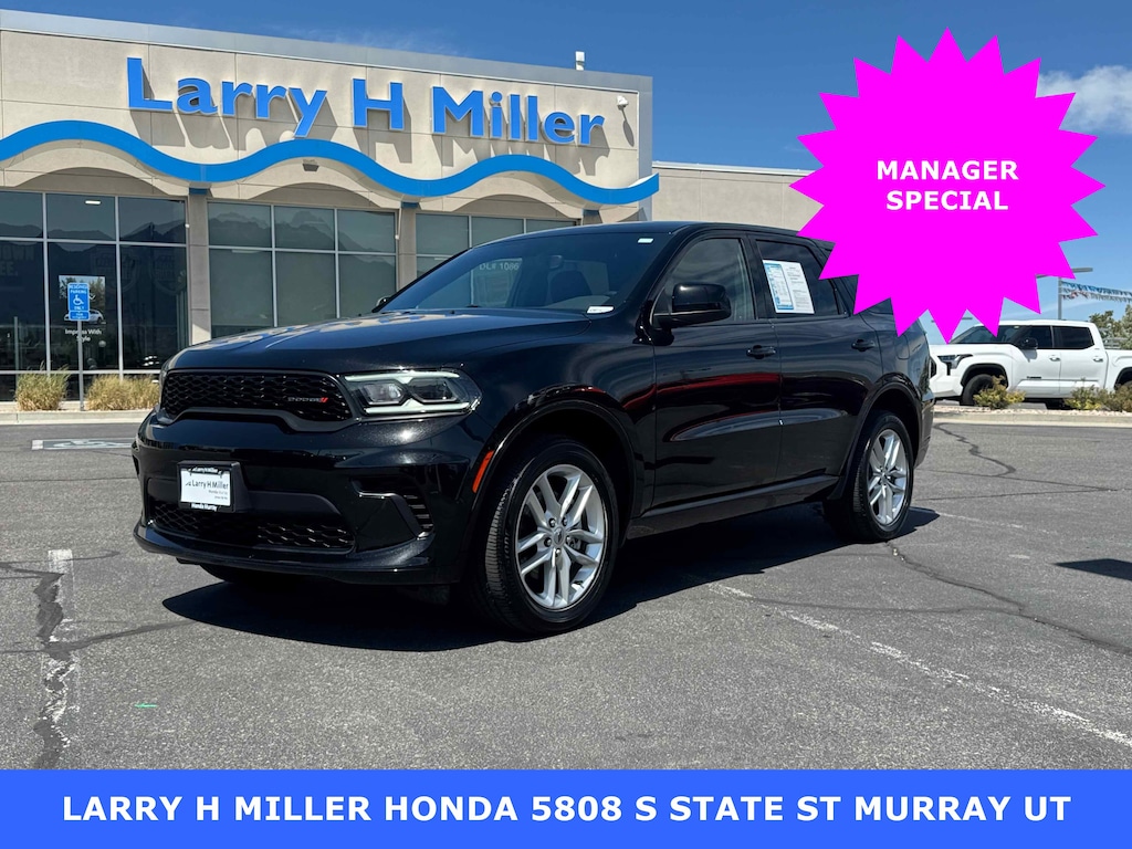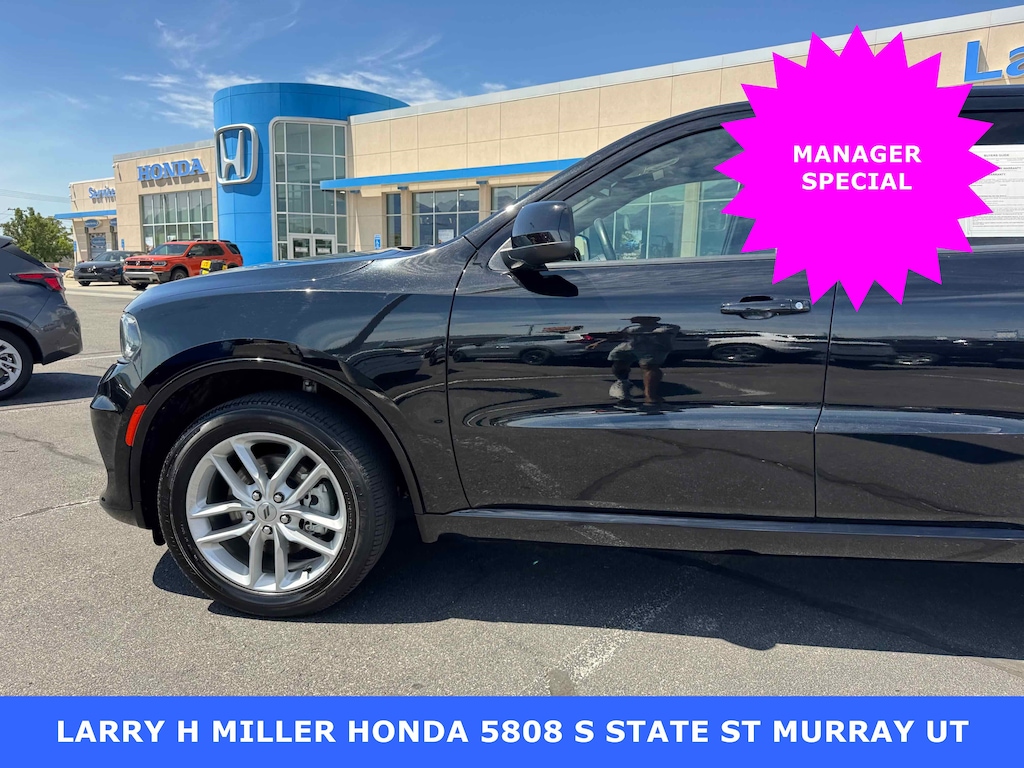 Larry H. Miller Honda Murray offers this 2024 DB Black Crystal Clearcoat Dodge Durango GT AWD It is loaded with many standard and optional features including: Quick Order Package 2BD GT, AWD, 3.45 Rear Axle Ratio, 3rd row seats: split-bench, 4-Wheel Disc Brakes, 6 Speakers, ABS brakes, Air Conditioning, Alloy wheels, AM/FM radio: SiriusXM, Apple CarPlay, Apple CarPlay/Android Auto, Auto-dimming Rear-View mirror, Automatic temperature control, Brake assist, Bumpers: body-color, Cloth Bucket Seats w/Shift Insert, Compass, Delay-off headlights, Driver door bin, Driver vanity mirror, Dual front impact airbags, Dual front side impact airbags, Electronic Stability Control, Exterior Mirrors w/Heating Element, Four wheel independent suspension, Front anti-roll bar, Front Bucket Seats, Front Center Armrest w/Storage, Front dual zone A/C, Front License Plate Bracket, Front reading lights, Fully automatic headlights, Garage door transmitter, Gloss Black Exterior Mirrors, Google Android Auto, GPS Antenna Input, Heated door mirrors, Heated front seats, Heated steering wheel, Illuminated entry, Integrated Center Stack Radio, Integrated Voice Command w/Bluetooth, Knee airbag, Leather steering wheel, Low tire pressure warning, Occupant sensing airbag, Outside temperature display, Overhead airbag, Overhead console, Panic alarm, ParkView Rear Back-Up Camera, Passenger door bin, Passenger vanity mirror, Power door mirrors, Power driver seat, Power Liftgate, Power steering, Power windows, Radio data system, Radio: Uconnect 4 w/8.4 Display, Rear air conditioning, Rear anti-roll bar, Rear reading lights, Rear seat center armrest, Rear window defroster, Rear window wiper, Red Accent Stitching, Remote keyless entry, Speed control, Speed-sensing steering, Speed-Sensitive Wipers, Split folding rear seat, Spoiler, Sport steering wheel, Steering wheel mounted audio controls, Tachometer, Telescoping steering wheel, Tilt steering wheel, Traction control, Trip computer, USB Host Flip, Variably intermittent wipers, Voltmeter, and Wheels: 20 x 8.0 Fine Silver.