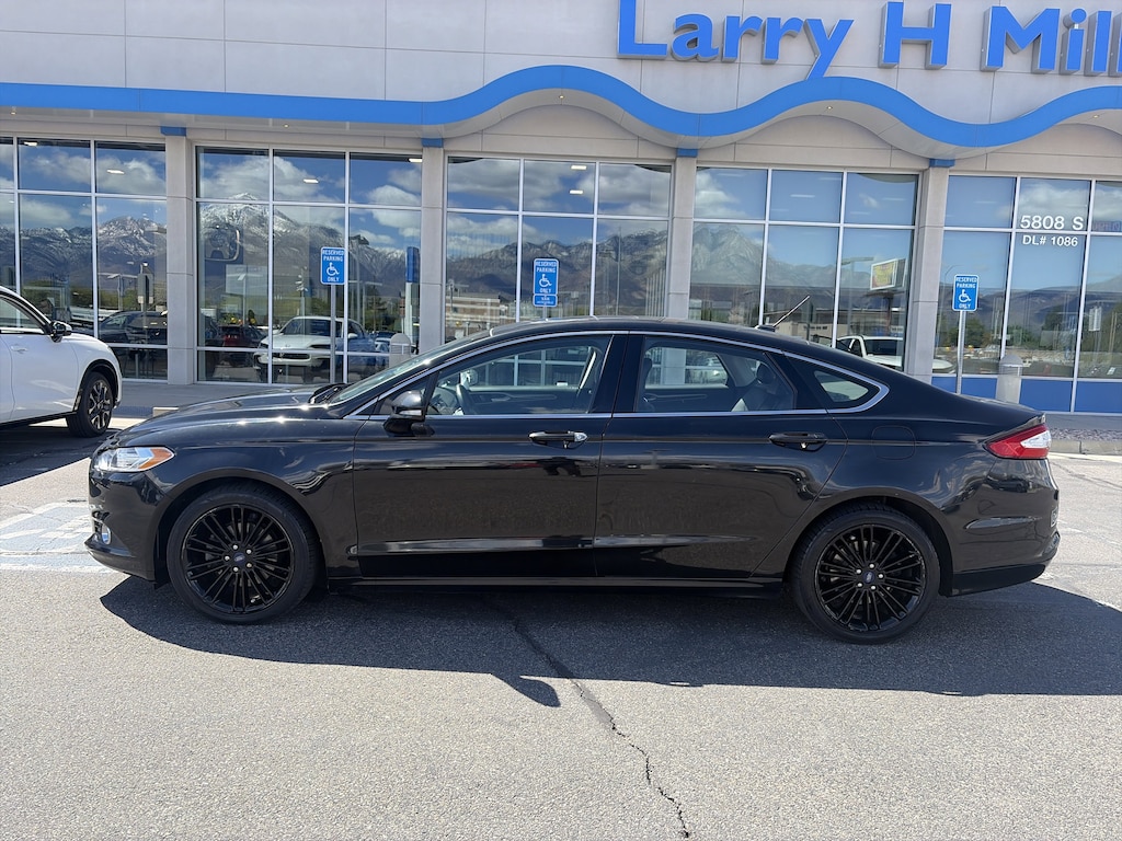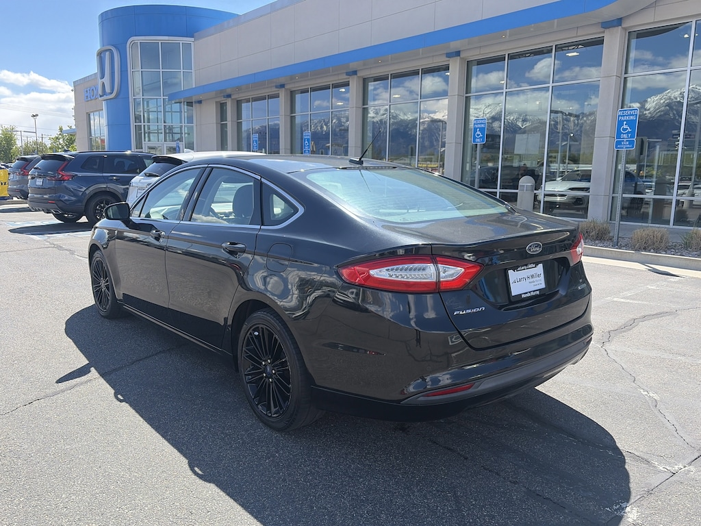 Larry H. Miller Honda Murray offers this 2014 Tuxedo Black Metallic Ford Fusion SE FWD It is loaded with many standard and optional features including: Equipment Group 202A, Luxury Package (Auto-Dimming Electrochromic Rearview Mirror, Chrome Moldings Around Window, Electrochromic Exterior Mirrors, Fog Lamps, Heated Leather Front Bucket Seats, Leather Wrapped Gearshift Knob, Leather-Wrapped Steering Wheel, and Warm Interior Accents), SE Luxury Driver Assist Package (110V Power Outlet, Auto High Beams, BLIS w/Cross Traffic Alert, Lane Departure Warning w/Lane Keeping System, and Rain-Sensing Wipers), SE MyFord Touch Technology Package (Dual Zone Electronic Automatic Temperature Control, Rear Video Camera, and SYNC w/MyFord Touch), 6-Speed Automatic, 17 Aluminum Wheels, 4-Wheel Disc Brakes, 6 Speakers, ABS brakes, Air Conditioning, Alloy wheels, AM/FM radio: SiriusXM, Brake assist, Bumpers: body-color, CD player, Cloth Front Bucket Seats, Compass, Delay-off headlights, Driver door bin, Driver vanity mirror, Dual front impact airbags, Dual front side impact airbags, Electronic Stability Control, Four wheel independent suspension, Front anti-roll bar, Front Bucket Seats, Front Center Armrest, Front reading lights, Fully automatic headlights, Heated door mirrors, Illuminated entry, Knee airbag, Low tire pressure warning, Moonroof, Occupant sensing airbag, Outside temperature display, Overhead airbag, Overhead console, Panic alarm, Passenger door bin, Passenger vanity mirror, Power door mirrors, Power driver seat, Power steering, Power windows, Radio data system, Radio: AM/FM Stereo/MP3/Single-CD, Rear anti-roll bar, Rear reading lights, Rear seat center armrest, Rear window defroster, Remote keyless entry, Reverse Sensing System, Security system, Speed control, Speed-sensing steering, Speed-Sensitive Wipers, Split folding rear seat, Steering wheel mounted audio controls, SYNC Communications & Entertainment System, Tachometer, Telescoping steering wheel, Tilt steering wheel, Traction control, Trip computer, Turn signal indicator mirrors, Universal Garage Door Opener, Variably intermittent wipers, and Wheels: 18 Gloss Black Aluminum.