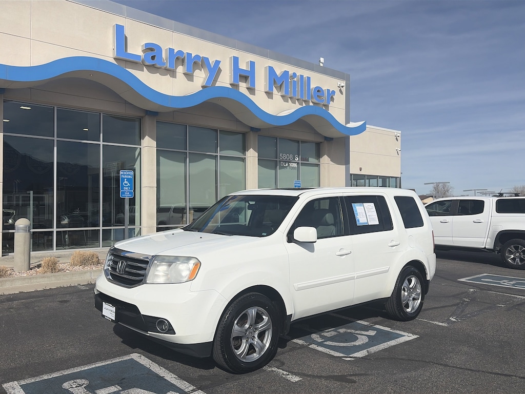 Larry H. Miller Honda Murray offers this 2014 Taffeta White Honda Pilot EX-L 4WD It is loaded with many standard and optional features including: 4WD, 18 Alloy Wheels, 3rd row seats: split-bench, 4-Wheel Disc Brakes, 4.312 Axle Ratio, 7 Speakers, ABS brakes, Air Conditioning, Alloy wheels, AM/FM radio: XM, AM/FM/CD Audio System, Anti-whiplash front head restraints, Auto-dimming Rear-View mirror, Automatic temperature control, Bodyside moldings, Brake assist, Bumpers: body-color, CD player, Compass, Delay-off headlights, Driver door bin, Driver vanity mirror, Dual front impact airbags, Dual front side impact airbags, Electronic Stability Control, Exterior Parking Camera Rear, Four wheel independent suspension, Front anti-roll bar, Front Bucket Seats, Front Center Armrest, Front dual zone A/C, Front fog lights, Front reading lights, Fully automatic headlights, Garage door transmitter: HomeLink, Heated door mirrors, Heated Front Bucket Seats, Heated front seats, Illuminated entry, Leather Shift Knob, Leather-Trimmed Seat Trim, Low tire pressure warning, Occupant sensing airbag, Outside temperature display, Overhead airbag, Overhead console, Panic alarm, Passenger door bin, Passenger vanity mirror, Power door mirrors, Power driver seat, Power Liftgate, Power moonroof, Power passenger seat, Power steering, Power windows, Radio data system, Rear air conditioning, Rear anti-roll bar, Rear reading lights, Rear seat center armrest, Rear window defroster, Rear window wiper, Remote keyless entry, Security system, Speed control, Speed-sensing steering, Speed-Sensitive Wipers, Split folding rear seat, Steering wheel mounted audio controls, Tachometer, Telescoping steering wheel, Tilt steering wheel, Traction control, Trip computer, Variably intermittent wipers, and XM Radio.
