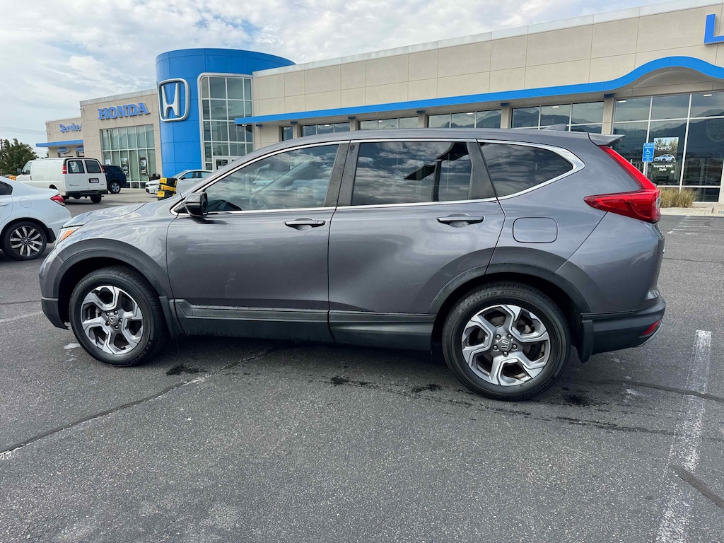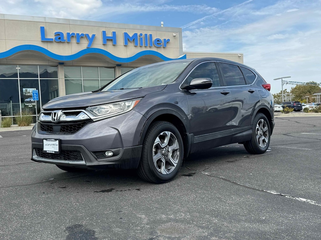 Larry H. Miller Honda Murray offers this 2018 Gray Honda CR-V EX-L AWD It is loaded with many standard and optional features including: AWD, 18 Alloy Wheels, 4-Wheel Disc Brakes, 5.64 Axle Ratio, 8 Speakers, ABS brakes, Air Conditioning, Alloy wheels, AM/FM radio: SiriusXM, Apple CarPlay/Android Auto, Auto High-beam Headlights, Auto-dimming Rear-View mirror, Automatic temperature control, Blind Spot Information (BSI) System warning, Brake assist, Bumpers: body-color, Compass, Delay-off headlights, Driver door bin, Driver vanity mirror, Dual front impact airbags, Dual front side impact airbags, Electronic Stability Control, Exterior Parking Camera Rear, Four wheel independent suspension, Front anti-roll bar, Front Bucket Seats, Front Center Armrest, Front dual zone A/C, Front fog lights, Front reading lights, Fully automatic headlights, Garage door transmitter: HomeLink, Heated door mirrors, Heated Front Bucket Seats, Heated front seats, Illuminated entry, Leather Seat Trim, Leather Shift Knob, Low tire pressure warning, Memory seat, Occupant sensing airbag, Outside temperature display, Overhead airbag, Overhead console, Panic alarm, Passenger door bin, Passenger vanity mirror, Power door mirrors, Power driver seat, Power Liftgate, Power moonroof, Power passenger seat, Power steering, Power windows, Radio data system, Radio: AM/FM/SiriusXM Audio System, Rear anti-roll bar, Rear seat center armrest, Rear window defroster, Rear window wiper, Remote keyless entry, Security system, Speed control, Speed-sensing steering, Speed-Sensitive Wipers, Split folding rear seat, Spoiler, Steering wheel mounted audio controls, Tachometer, Telescoping steering wheel, Tilt steering wheel, Traction control, Trip computer, Turn signal indicator mirrors, and Variably intermittent wipers.