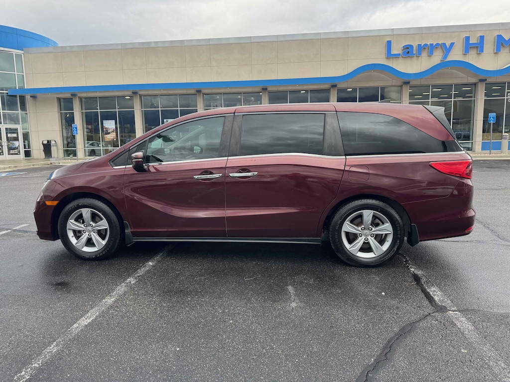 Larry H. Miller Honda Murray offers this 2018 Honda Odyssey EX-L FWD It is loaded with many standard and optional features including: 3rd row seats: split-bench, 4-Wheel Disc Brakes, 4.33 Axle Ratio, 7 Speakers, ABS brakes, Air Conditioning, Alloy wheels, AM/FM radio: SiriusXM, Anti-whiplash front head restraints, Apple CarPlay/Android Auto, Auto High-beam Headlights, Auto-dimming Rear-View mirror, Automatic temperature control, Blind Spot Information (BSI) System warning, Brake assist, Bumpers: body-color, Delay-off headlights, Driver door bin, Driver vanity mirror, Driver's Seat Mounted Armrest, Dual front impact airbags, Dual front side impact airbags, Electronic Stability Control, Emergency communication system: HondaLink, Exterior Parking Camera Rear, Four wheel independent suspension, Front anti-roll bar, Front Bucket Seats, Front dual zone A/C, Front fog lights, Front reading lights, Fully automatic headlights, Garage door transmitter: HomeLink, Heated door mirrors, Heated Front Bucket Seats, Heated front seats, Illuminated entry, Knee airbag, Leather Seat Trim, Leather steering wheel, Low tire pressure warning, Memory seat, Occupant sensing airbag, Outside temperature display, Overhead airbag, Overhead console, Panic alarm, Passenger door bin, Passenger seat mounted armrest, Passenger vanity mirror, Power door mirrors, Power driver seat, Power Liftgate, Power moonroof, Power passenger seat, Power steering, Power windows, Radio data system, Radio: 160-Watt AM/FM/HD/SiriusXM Audio System, Rear air conditioning, Rear anti-roll bar, Rear reading lights, Rear seat center armrest, Rear window defroster, Rear window wiper, Reclining 3rd row seat, Remote keyless entry, Security system, Speed control, Speed-sensing steering, Speed-Sensitive Wipers, Split folding rear seat, Spoiler, Steering wheel mounted audio controls, Tachometer, Telescoping steering wheel, Tilt steering wheel, Traction control, Trip computer, Turn signal indicator mirrors, Variably intermittent wipers, and Wheels: 18 Silver-Painted Alloy.