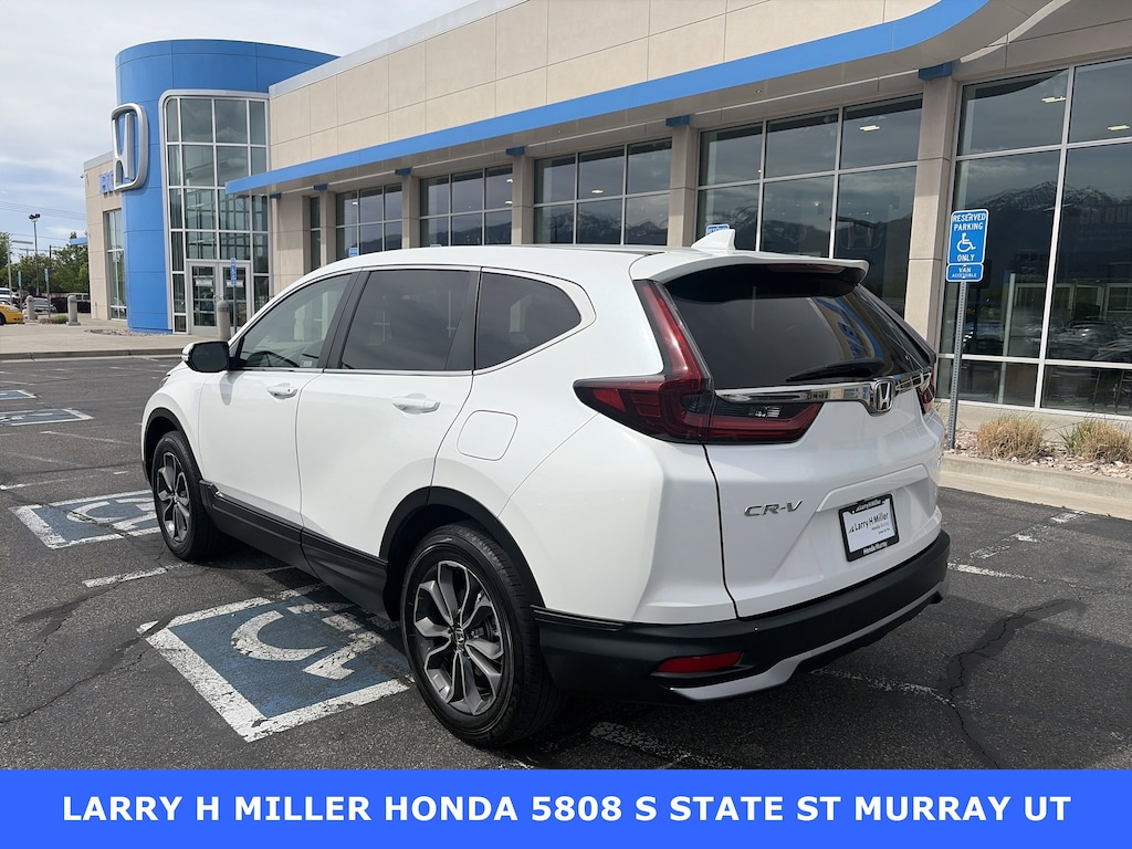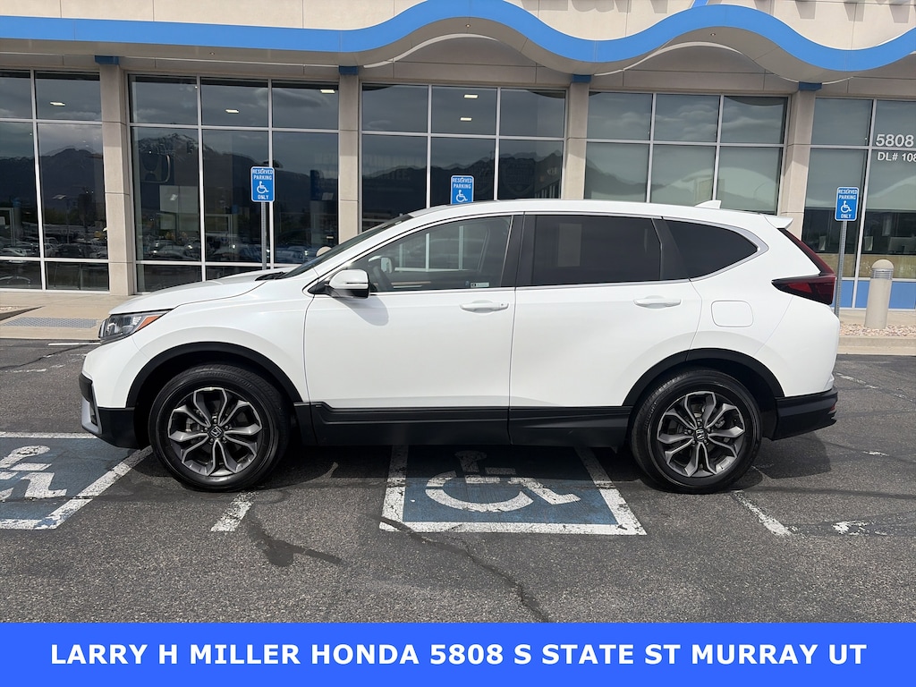 Larry H. Miller Honda Murray offers this 2021 Honda CR-V EX AWD It is loaded with many standard and optional features including: AWD, 18 Alloy Wheels, 4-Wheel Disc Brakes, 5.64 Axle Ratio, 6 Speakers, ABS brakes, Adaptive Cruise Control: Adaptive Cruise Control (ACC) with Low-Speed Follow, Air Conditioning, Alloy wheels, AM/FM radio: SiriusXM, Apple CarPlay/Android Auto, Auto High-beam Headlights, Automatic temperature control, Blind Spot Information (BSI) System warning, Brake assist, Bumpers: body-color, Cloth Seat Trim, Compass, Delay-off headlights, Driver door bin, Driver vanity mirror, Dual front impact airbags, Dual front side impact airbags, Electronic Stability Control, Exterior Parking Camera Rear, Forward collision: Collision Mitigation Braking System (CMBS) + FCW mitigation, Four wheel independent suspension, Front anti-roll bar, Front Bucket Seats, Front Center Armrest, Front dual zone A/C, Front fog lights, Front reading lights, Heated door mirrors, Heated Front Bucket Seats, Heated front seats, Illuminated entry, Low tire pressure warning, Occupant sensing airbag, Outside temperature display, Overhead airbag, Overhead console, Panic alarm, Passenger door bin, Passenger vanity mirror, Power door mirrors, Power driver seat, Power moonroof, Power steering, Power windows, Radio data system, Radio: 180-Watt AM/FM/HD/SiriusXM Audio System, Rear anti-roll bar, Rear seat center armrest, Rear window defroster, Rear window wiper, Remote keyless entry, Security system, Speed control, Speed-sensing steering, Speed-Sensitive Wipers, Split folding rear seat, Spoiler, Steering wheel mounted audio controls, Tachometer, Telescoping steering wheel, Tilt steering wheel, Traction control, Trip computer, Turn signal indicator mirrors, and Variably intermittent wipers.