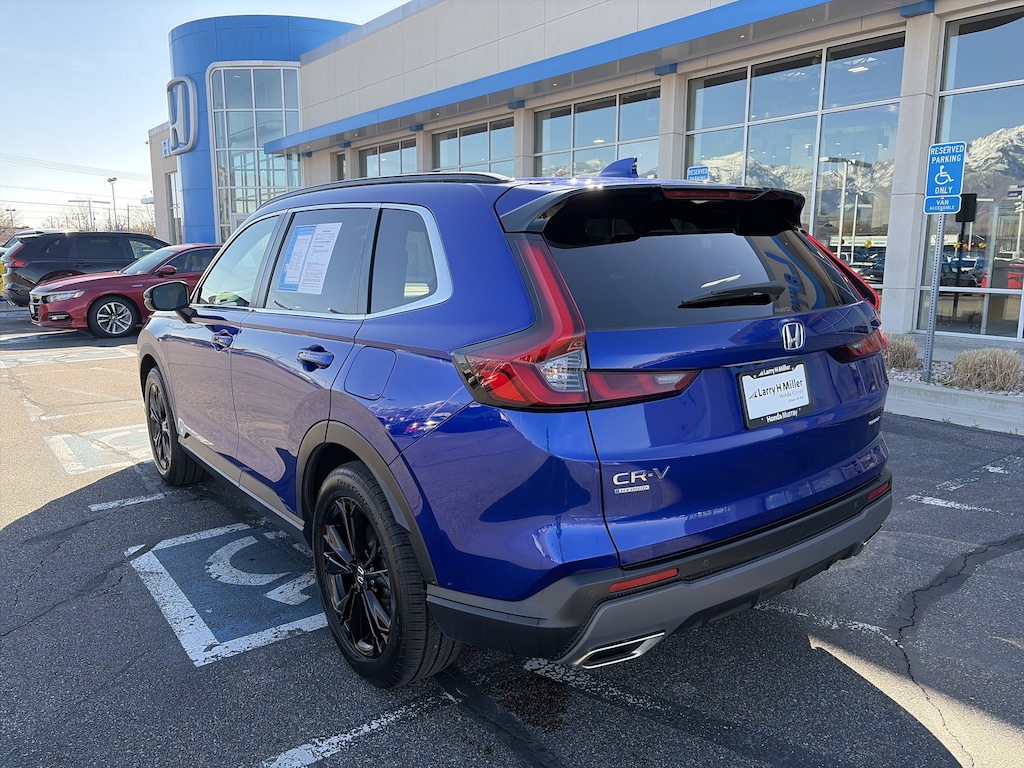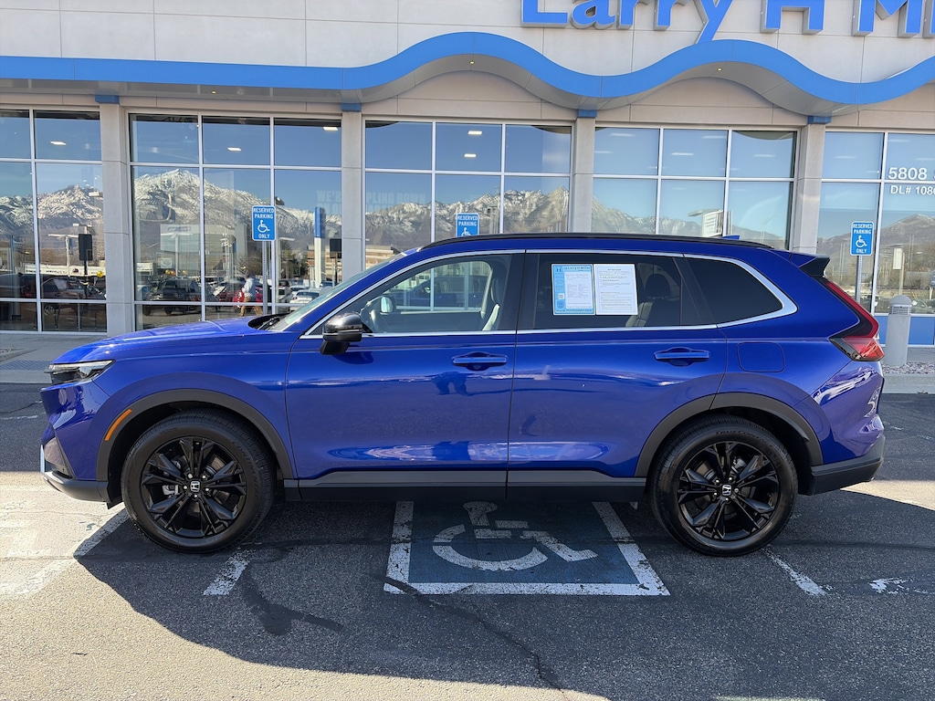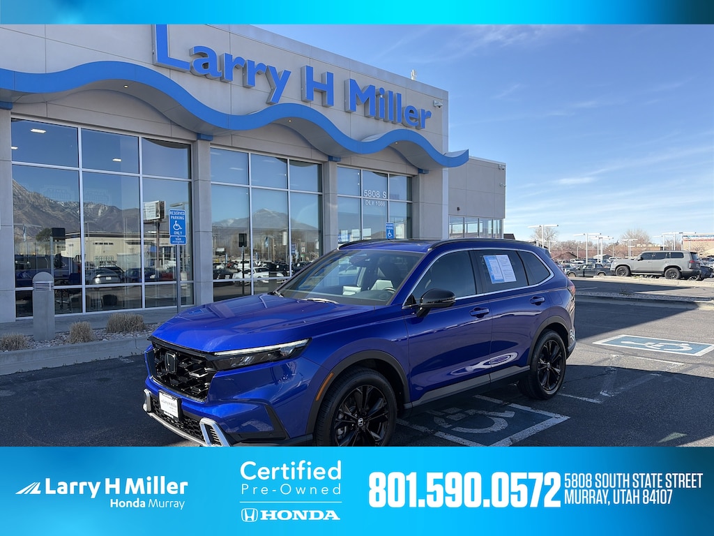 Larry H. Miller Honda Murray offers this 2023 Still Night Pearl Honda CR-V Hybrid Sport Touring AWD It is loaded with many standard and optional features including: HondaTrue Certified Certified, 2.0L I4 DOHC 16V, 12 Speakers, Adaptive Cruise Control: Adaptive Cruise Control (ACC) with Low-Speed Follow, Air Conditioning, Auto High-beam Headlights, Auto-dimming Rear-View mirror, Bumpers: body-color, Compass, Driver door bin, Driver vanity mirror, Exterior Parking Camera Rear, Front dual zone A/C, Front reading lights, Heated door mirrors, Heated Front Bucket Seats w/Driver Memory, Heated steering wheel, Illuminated entry, Leather Shift Knob, Leather steering wheel, Memory seat, Navigation system: Honda Satellite-Linked Navigation System, Outside temperature display, Overhead console, Panic alarm, Passenger door bin, Passenger vanity mirror, Power door mirrors, Power driver seat, Power Liftgate, Power moonroof, Power steering, Power windows, Radio: Bose Premium Sound System w/Navigation, Rear reading lights, Rear seat center armrest, Rear window defroster, Rear window wiper, Remote keyless entry, Security system, Spoiler, Steering wheel mounted audio controls, Telescoping steering wheel, Tilt steering wheel, Turn signal indicator mirrors, Variably intermittent wipers, Wheels: 19 Berlina Black Alloy, Wireless Apple CarPlay/Wireless Android Auto, 4-Wheel Disc Brakes, 4.438 Axle Ratio, ABS brakes, Alloy wheels, AM/FM radio: SiriusXM, Automatic temperature control, Blind Spot Information (BSI) System warning, Brake assist, Delay-off headlights, Dual front impact airbags, Dual front side impact airbags, Electronic Stability Control, Four wheel independent suspension, Front anti-roll bar, Front Bucket Seats, Front Center Armrest, Fully automatic headlights, Heated front seats, Knee airbag, Leather Seat Trim, Low tire pressure warning, Occupant sensing airbag, Overhead airbag, Power passenger seat, Radio data system, Rain sensing wipers, Rear anti-roll bar, Rear side impact airbag, Speed control, Speed-sensing steering, Speed-Sensitive Wipers, Split folding rear seat, Traction control, and Trip computer.