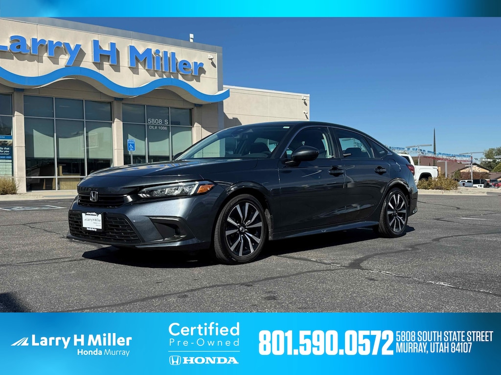 Larry H. Miller Honda Murray offers this 2024 Gray Honda Civic EX FWD It is loaded with many standard and optional features including: HondaTrue Certified Certified, Gray Cloth, 4-Wheel Disc Brakes, 8 Speakers, ABS brakes, Adaptive Cruise Control: Adaptive Cruise Control (ACC) with Low-Speed Follow, Air Conditioning, Alloy wheels, AM/FM radio, Apple CarPlay/Android Auto, Auto High-beam Headlights, Automatic temperature control, Blind Spot Information (BSI) System warning, Brake assist, Bumpers: body-color, Cloth Seating Surfaces, Delay-off headlights, Driver door bin, Driver vanity mirror, Dual front impact airbags, Dual front side impact airbags, Electronic Stability Control, Emergency communication system: HondaLink, Exterior Parking Camera Rear, Four wheel independent suspension, Front anti-roll bar, Front Bucket Seats, Front Center Armrest, Front dual zone A/C, Front reading lights, Fully automatic headlights, Heated door mirrors, Heated Front Bucket Seats, Heated front seats, Illuminated entry, Knee airbag, Leather Shift Knob, Leather steering wheel, Low tire pressure warning, Occupant sensing airbag, Outside temperature display, Overhead airbag, Overhead console, Panic alarm, Passenger door bin, Passenger vanity mirror, Power door mirrors, Power moonroof, Power steering, Power windows, Radio data system, Radio: 180-Watt Audio System, Rear anti-roll bar, Rear seat center armrest, Rear side impact airbag, Rear window defroster, Remote keyless entry, Security system, Speed control, Speed-sensing steering, Split folding rear seat, Steering wheel mounted audio controls, Tachometer, Telescoping steering wheel, Tilt steering wheel, Traction control, Trip computer, Variably intermittent wipers, and Wheels: 17 Alloy w/Gloss Black Inserts.