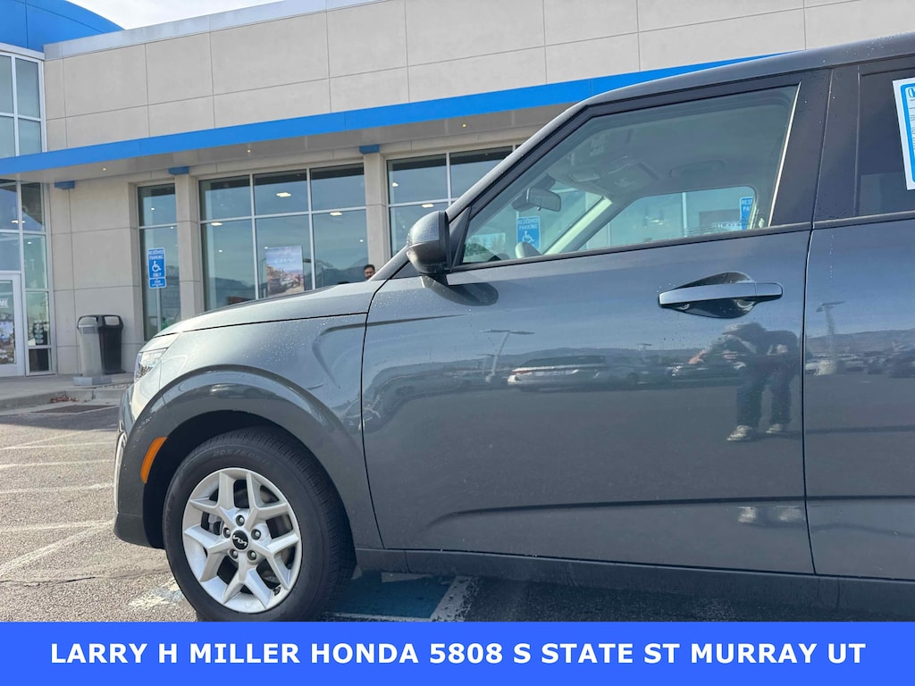 Larry H. Miller Honda Murray offers this 2024 Gravity Gray Kia Soul LX FWD It is loaded with many standard and optional features including: LX Technology Package (6.5J x 16 Alloy Wheels, Blind-Spot Collision-Avoidance Assist, Lane Change Assist, and Rear Cross-Traffic Collision Avoidance Assist), 4-Wheel Disc Brakes, 6 Speakers, 6.5J x 16 Steel Wheels, ABS brakes, Air Conditioning, AM/FM radio, Apple CarPlay & Android Auto, Auto High-beam Headlights, Brake assist, Bumpers: body-color, Carpeted Floor Mats, Compass, Delay-off headlights, Driver door bin, Driver vanity mirror, Dual front impact airbags, Dual front side impact airbags, Electronic Stability Control, Exterior Parking Camera Rear, Front anti-roll bar, Front Bucket Seats, Front Center Armrest, Front reading lights, Front wheel independent suspension, Fully automatic headlights, Illuminated entry, Low tire pressure warning, Occupant sensing airbag, Outside temperature display, Overhead airbag, Overhead console, Panic alarm, Passenger door bin, Passenger vanity mirror, Power door mirrors, Power steering, Power windows, Radio data system, Radio: AM/FM/MP3/HD Audio System, Rear window defroster, Rear window wiper, Remote keyless entry, Speed control, Speed-sensing steering, Split folding rear seat, Steering wheel mounted audio controls, Tachometer, Telescoping steering wheel, Tilt steering wheel, Traction control, Trip computer, Variably intermittent wipers, and Woven & Tricot Cloth Seat Trim.