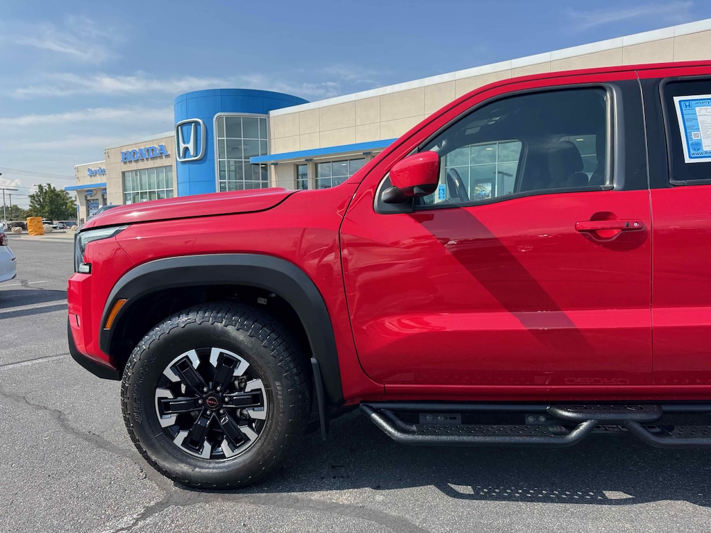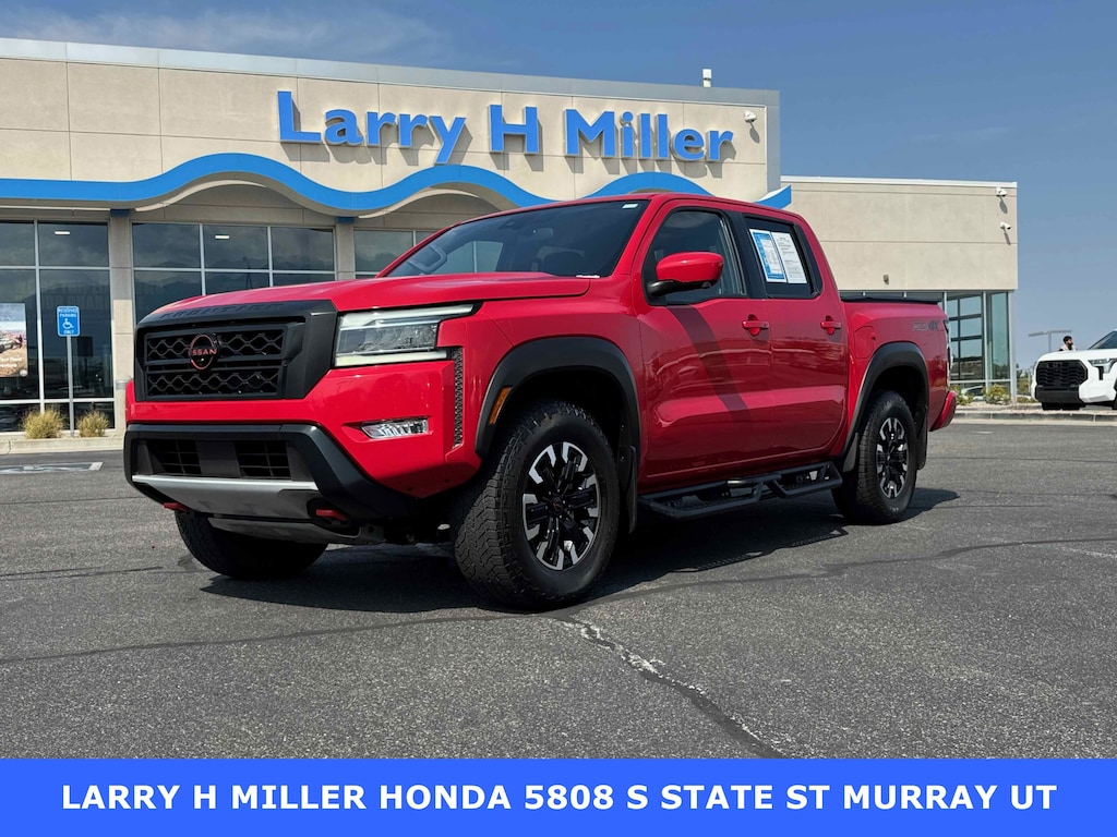 Larry H. Miller Honda Murray offers this 2023 Red Alert Nissan Frontier PRO-4X 4WD It is loaded with many standard and optional features including: Off-Road Protection Package, PRO Convenience Package (Heated Steering Wheel, Intelligent Around View Monitor (I-AVM), and Wireless Charging For Personal Devices), Tow Package: Hitch, Tow Harness, 4WD, 17 Alloy Wheels, 3.692 Axle Ratio, 4-Wheel Disc Brakes, 6 Speakers, ABS brakes, Air Conditioning, Alloy wheels, AM/FM radio: SiriusXM, Anti-whiplash front head restraints, Automatic temperature control, Brake assist, Bumpers: body-color, Delay-off headlights, Driver door bin, Driver vanity mirror, Dual front impact airbags, Dual front side impact airbags, Electronic Stability Control, Emergency communication system: NissanConnect Services, Front anti-roll bar, Front Bucket Seats, Front Center Armrest, Front dual zone A/C, Front fog lights, Front reading lights, Front wheel independent suspension, Fully automatic headlights, Illuminated entry, Illuminated Kick Plates, Knee airbag, Leather Shift Knob, Low tire pressure warning, Navigation system: Nissan Navigation with Voice Recognition, Occupant sensing airbag, Overhead airbag, Overhead console, Panic alarm, Passenger door bin, Passenger vanity mirror, Power door mirrors, Power driver seat, Power steering, Power windows, PRO Embroidered Premium Cloth Seat Trim, PRO-4X Carpeted Floor Mats, PRO-4X Mud Flaps, Radio data system, Radio: SXM/AM/FM/AUX/USB Audio System w/6 Speakers, Rear anti-roll bar, Rear seat center armrest, Rear step bumper, Remote keyless entry, Security system, Speed control, Speed-sensing steering, Split folding rear seat, Steering wheel mounted audio controls, Tachometer, Tilt steering wheel, Traction control, Trip computer, Variably intermittent wipers, and Voltmeter.