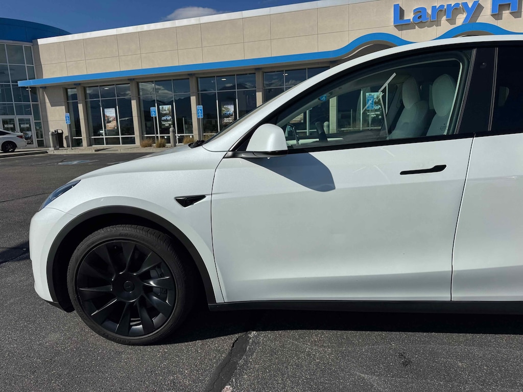 Larry H. Miller Honda Murray offers this 2023 Pearl White Tesla Model Y Long Range AWD It is loaded with many standard and optional features including: 14 Speakers, 4-Wheel Disc Brakes, 5 Seat Interior, 9.0 Axle Ratio, ABS brakes, Air Conditioning, Alloy wheels, Audio memory, Auto High-beam Headlights, Auto tilt-away steering wheel, Auto-dimming door mirrors, Auto-dimming Rear-View mirror, Automatic temperature control, Brake assist, Bumpers: body-color, Compass, Delay-off headlights, Driver door bin, Driver vanity mirror, Dual front impact airbags, Dual front side impact airbags, Electronic Stability Control, Emergency communication system, Exterior Parking Camera Rear, Four wheel independent suspension, Front anti-roll bar, Front Bucket Seats, Front Center Armrest, Front dual zone A/C, Front fog lights, Front reading lights, Fully automatic headlights, Genuine wood dashboard insert, Heated door mirrors, Heated front seats, Heated rear seats, Heated steering wheel, HVAC memory, Illuminated entry, Knee airbag, Lane Departure Warning System, Low tire pressure warning, Memory seat, Navigation System, Occupant sensing airbag, Outside temperature display, Overhead airbag, Passenger door bin, Passenger vanity mirror, Power door mirrors, Power driver seat, Power Liftgate, Power passenger seat, Power steering, Power windows, Premium Audio System, Radio data system, Rain sensing wipers, Rear reading lights, Rear seat center armrest, Rear window defroster, Security system, Speed control, Speed-sensing steering, Split folding rear seat, Steering wheel memory, Steering wheel mounted A/C controls, Steering wheel mounted audio controls, Telescoping steering wheel, Tilt steering wheel, Traction control, Trip computer, Variably intermittent wipers, Vegan Leather Seat Trim, and Wheels: 19 x 9.5 Gemini.
